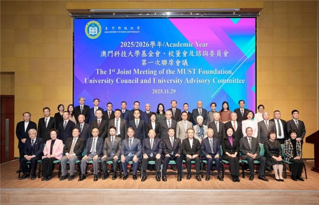 当日下午,澳科大亦于大学N101大礼堂召开2025/2026学年澳科大基金会、校董会及咨询委员会第一次联席会议。47位基金会成员、校董、咨询委员出席会议。会议由澳科大基金会信托委员会主席崔世昌主持。李行伟校长代表咨询委员报告工作情况,同时他亦报告了大学2025/2026学年工作总结及发展规划,并且表示欢迎新校董的加入; 校董会主席廖泽云表示,科大与澳门各高校共同推动了高教发展,澳科大首届内外全科医学学士毕业生,提升了澳门医疗水平。大学未来将继续推动国际化战略,同时深化与大湾区的合作,并促进学科交叉发展。